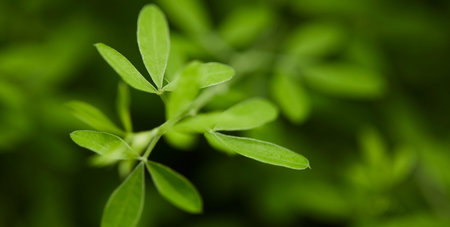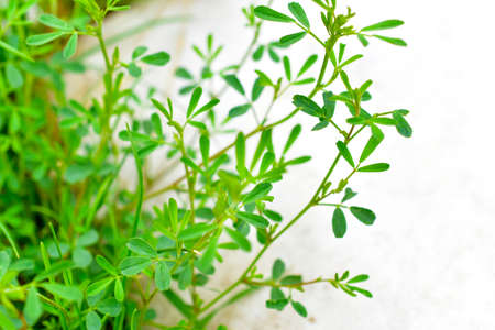 A close up shot of Fenugreek plant, Trigonella foenum-graecum. Its seeds and leaves are common ingredients in dishes from the Indian subcontinent where it is called methi.