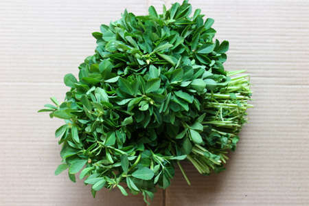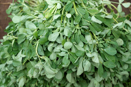 Bunch of fresh green fenugreek leaves