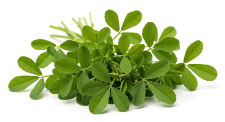 Fenugreek or Trigonella foenum-graecum. Green plant. Isolated on white background.