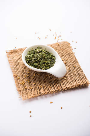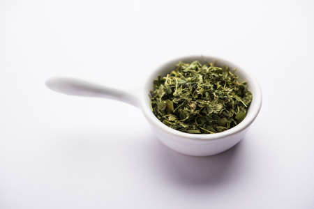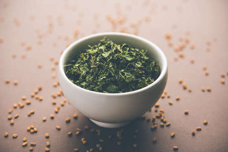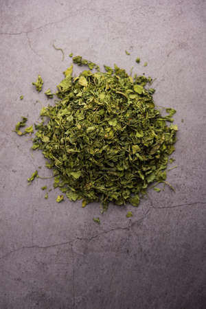 Kasuri Methi or Kasoori Methi or dried fenugreek leaves also known as Trigonella Foenum Graecum