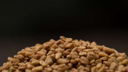 Pile of Fenugreek seeds isolated on dark background.