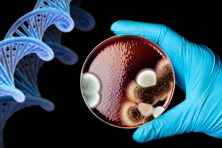 genetically modified fungi on agar plate over white background