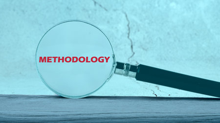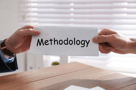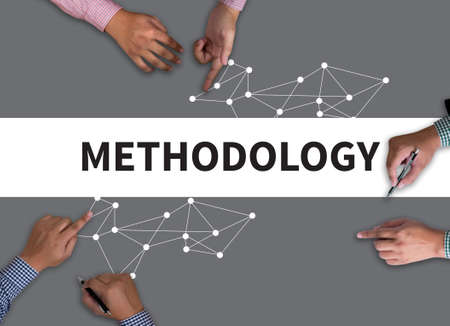 Study or activity concept. The word methodology written through a magnifying glass on an abstract background