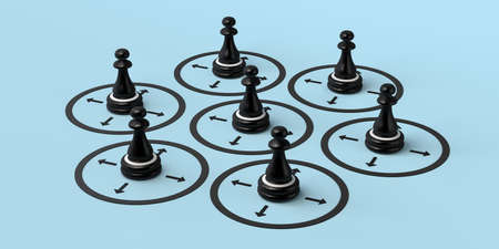 Social distancing concept with chess piece. Safe. 3d illustration. Copy space.
