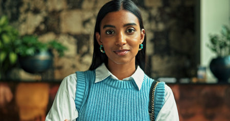 Portrait, business and Indian woman in office with confidence, ambition and job as green consultant. Smile, professional employee and worker with sustainability advisor or eco friendly specialist