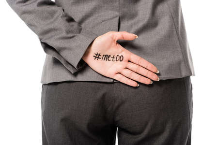 Cropped view of businesswoman with me too lettering on hand isolated on white