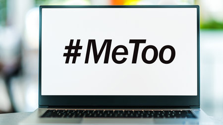 Laptop computer displaying the sign of MeToo movement.