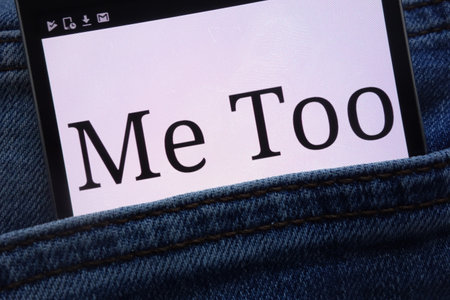 KONSKIE, POLAND - JUNE 11, 2018: Me Too text displayed on smartphone hidden in jeans pocket