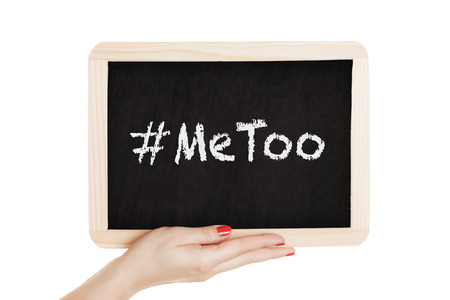 Woman holding chalkboard with metoo sign in her hands.