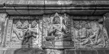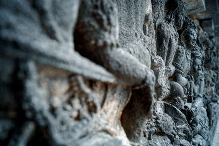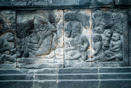 Bas-relief inside Prambanan temple complex. 9th century Hindu temple. Located near Yogyakarta on East Java, Indonesia