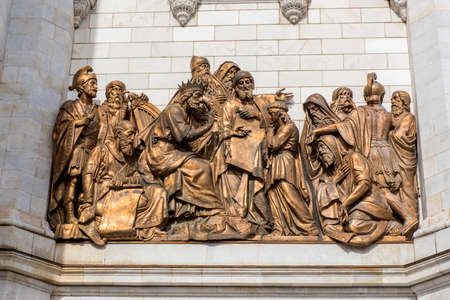 Russia, Moscow 06,04,2019 Fragment of external furniture of a Christian temple of the Christ of the Savior in Moscow