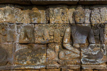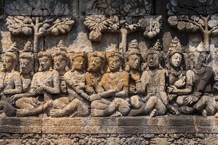 Bas-relief statue at Borobudur, a 9th-century Mahayana Buddhist temple in Central Java, Indonesia. It is the world's largest Buddhist temple.