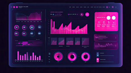 A sleek and modern data visualization dashboard featuring vibrant pink and black elements, perfect for showcasing analytics and statistical insights in business presentations.