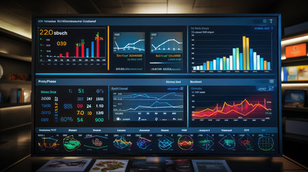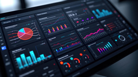 A close-up view of a digital dashboard showcasing various data visualizations. This image features colorful graphs and charts, ideal for illustrating analytics and performance insights in a modern workspace.