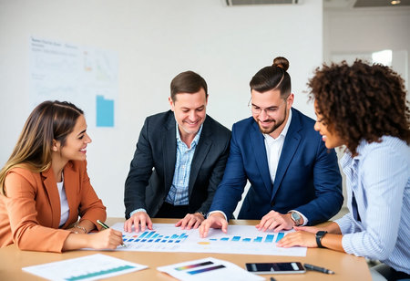 Diverse corporate team working together on financial analysis. professional businesspeople working together