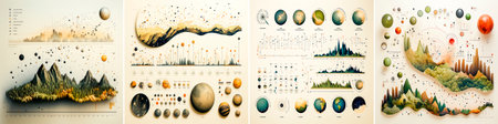 4 photos, Set of different line charts and icons in unique style. Ideal for data visualization and presentations. Icons can be easily customized and integrated into various design projects.