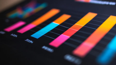 Vibrant bar graph displayed on a digital screen, showcasing data insights and trends for business analysis. Ideal for presentations and reports.