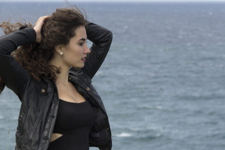 Beautiful young woman near the sea.