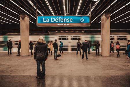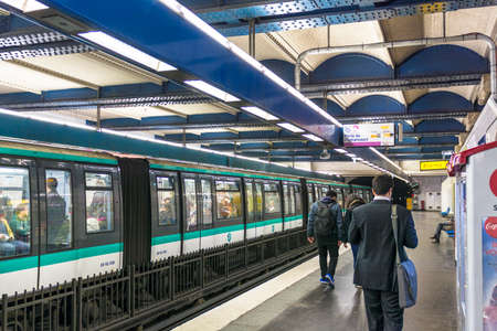 Paris, France, February 12, 2016: metro train in Paris, France. Metro is very popular transport in Paris