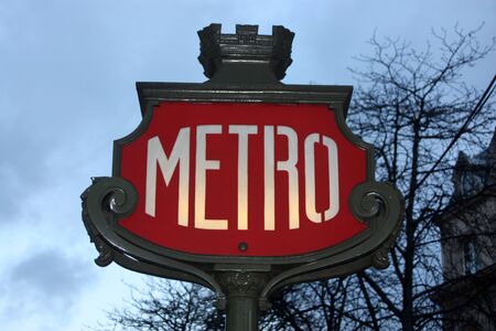 Paris, France - March 17, 2020: A Paris vintage passage public metro sign
