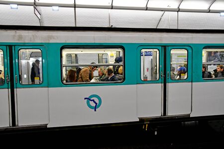 PARIS, FRANCE Paris Metro interior on SEPTEMBER 30, 2016. It is the second-busiest subway system in Europe, after Moscow.