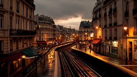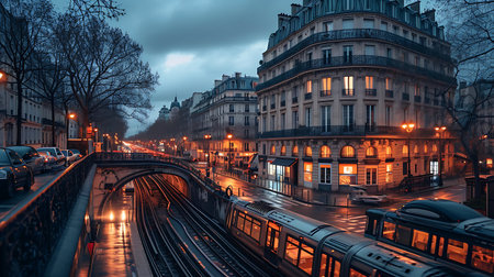 Typical street view from paris with beautiful classic buildings in this wonderful european destination on a bright sunset