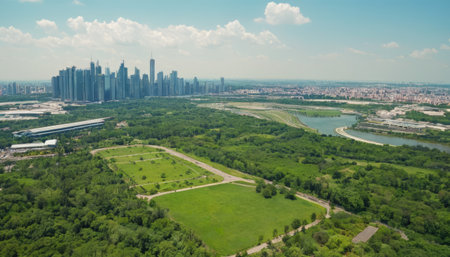Vibrant green parks provide refreshing urban escapes for relaxation and leisure activities