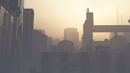 Post Apocalyptic Heavily Air Polluted Smoggy Metropolis 3D Illustration