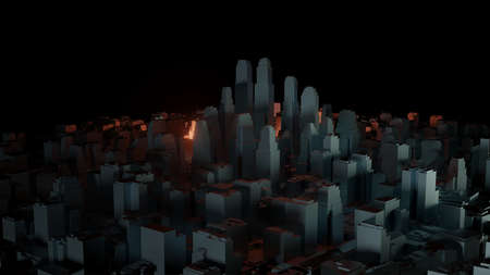 3d city with bright flashes on a dark background