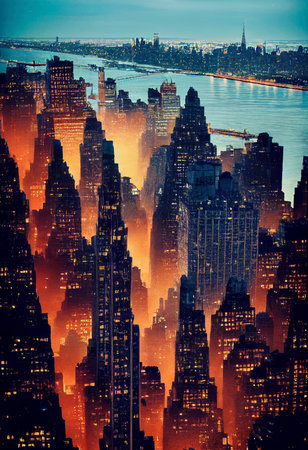 new york city realistic illustration. city architecture illustration. city wallpapers.