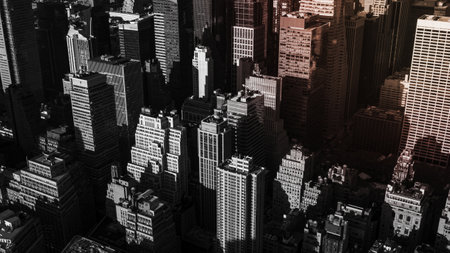 Aerial view of the New York City skyline near Midtown with duotone