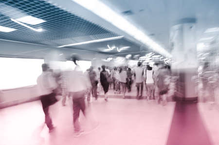 city business people abstract blur motion, passenger walk at subway station
