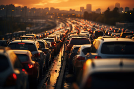 Navigating Urban Congestion: Witness the challenges of urban commuting with this striking image of a traffic jam on a city highway. Perfect for illustrating transportation issues and solutions