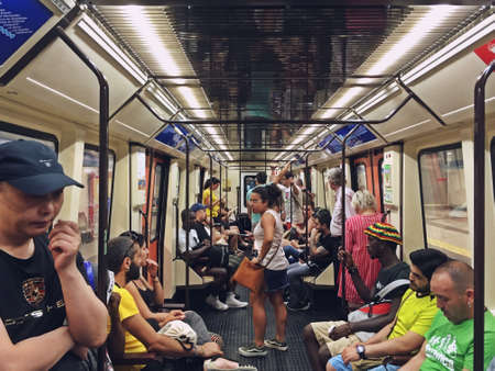 PARIS, FRANCE Paris Metro interior on SEPTEMBER 30, 2016. It is the second-busiest subway system in Europe, after Moscow.