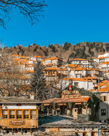 METSOVO, GREECE, JANUARY - 2020 - Winter urban day scene at metsovo town, greece