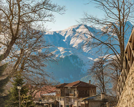 Winter urban day landscape scene at metsovo town, greece