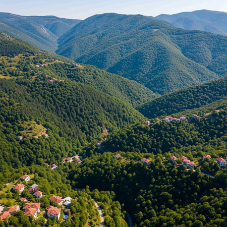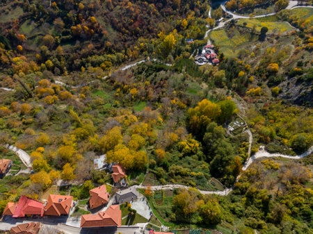 Aerial view of Village of Dolen with Authentic nineteenth century houses, Blagoevgrad Region, Bulgaria