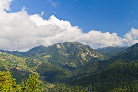 Landscape view on the high Old mountain range on Balkan in Spring Autumn trough the clouds