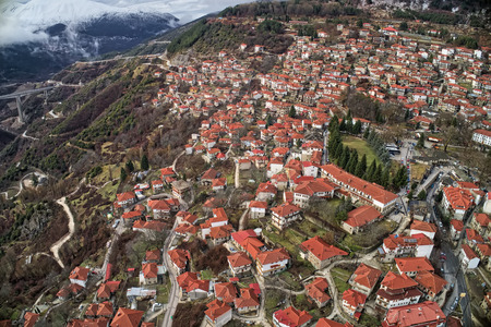Aerial view of Metsovo is a town in Epirus, in the mountains of Pindus in northern Greece and attracts many visitors