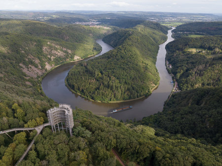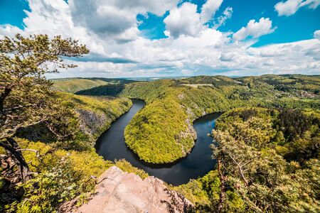The Saarschleife, river Saar and the Cloef lookout. Panoramic viewpoint.