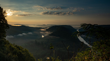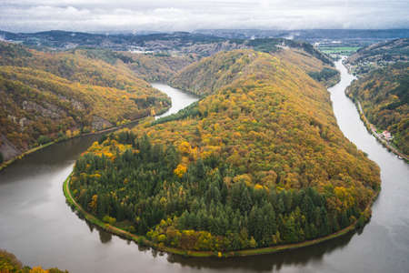 Saarschleife, the Saar river turning around a hill in Saarland, Germany.