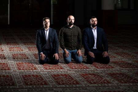 Three Muslim Man is Praying in the Mosque
