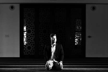 Businessman Muslim Making Traditional Prayer to God Allah in the Mosque