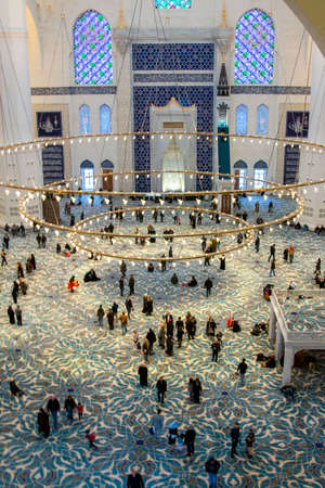 Inside interior and dome of Camlica Mosque. The new mosque and the biggest in Istanbul. Located on the beautiful Buyuk Camlica Tepesi hill, April 22, 2020, istanbul, Turkey