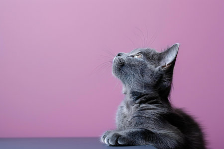 Portrait of a gray cat on a pink background, high quality, high resolution