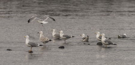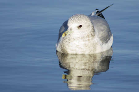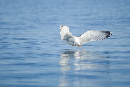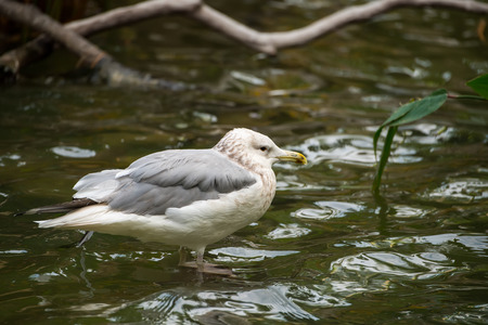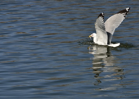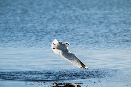 A mew gull (Larus canus) taking off from a lake in the city of Berlin