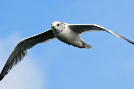 Like a missle soaring across the sky, a ring-billed gull glides through the heavens.