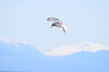 Seagull flying and look for food on blue sky over the coast of bangpoo thailand