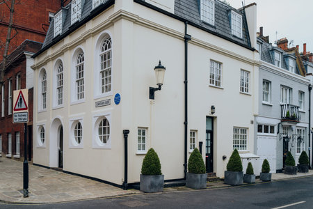 London, UK - February 21, 2023: Row of houses in Kensington and Chelsea, an affluent area of West London favoured by celebrities.