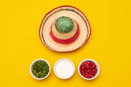Mexican sombrero hat on color background. Cinco de mayo colorful concept.